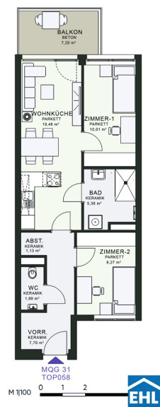 Fliesen, Parkett, Fußbodenheizung, Wohnküche / offene Küche, Personenaufzug, Dusche