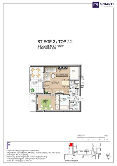 Wohnfläche: ca. 46,38m² + Loggia: ca. 9,64m² + Kellerabteil