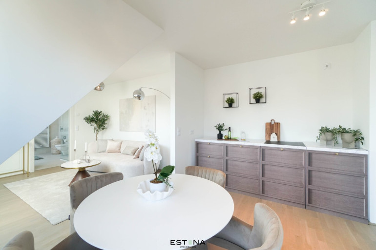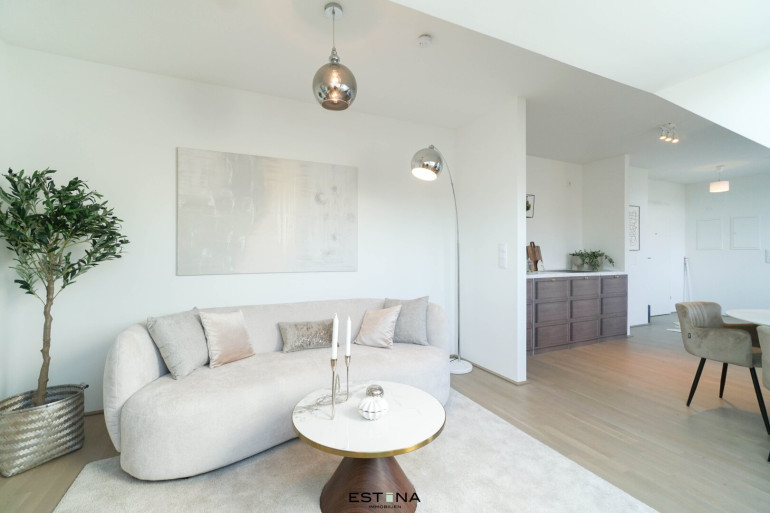 Die angeführten Fotos sind Beispielbilder einer bereits fertiggestellten Wohnung oder KI Visualisierung im Projekt.