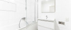 Mit Badewanne, Waschbecken und Waschmaschinenanschluss.