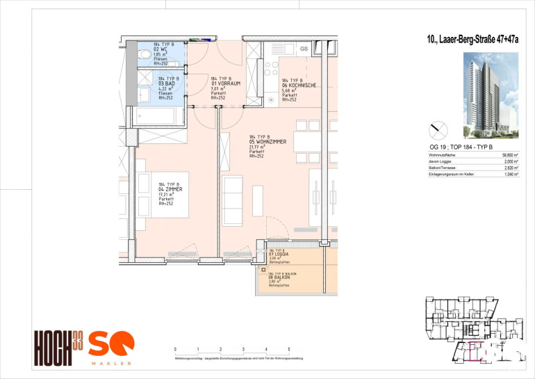- Wohnfläche: ca. 57,80m² zzgl. Loggia mit ca. 2m²