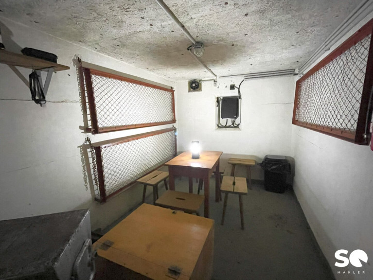 Das Gebäude besteht aus zwei unterirdischen Geschossen mit einer Gesamtnutzfläche von ca. 40 m². Die Anlage verfügt über vier Räume, die über einen Gang und Stiegen miteinander verbunden sind. Zur Ausstattung zählen ein Stromaggregat mit Batterien, eine elektrische Lüftung sowie ein Holzofen. Zusätzlich vorhanden ist ein komplettes Ersatzset (Stromaggregat, Schaltkasten, Lüftungsventilator sowie ein vollständiger Batteriesatz).