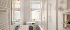 - Badezimmer mit Fenster und Badewanne