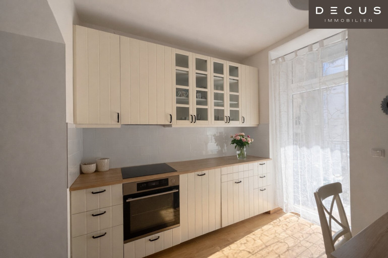 Ein besonderes Highlight ist der ca. 10,05 m² große, westseitig ausgerichtete Balkon, der ruhig in den Innenhof gelegen ist und ideale Voraussetzungen für entspannte Nachmittage und laue Abendstunden im Freien bietet. Die schöne Küche im charmanten Landhausstil fügt sich harmonisch in das Gesamtbild ein und verleiht der Wohnung eine warme, wohnliche Note.