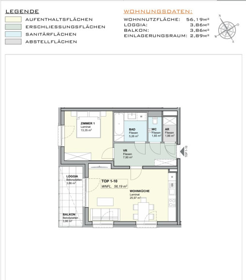 zur Vermietung gelangt eine moderne geförderte 2-Wohnung im Bezirk Hollabrunn. Es handelt sich um einen Erstbezug.