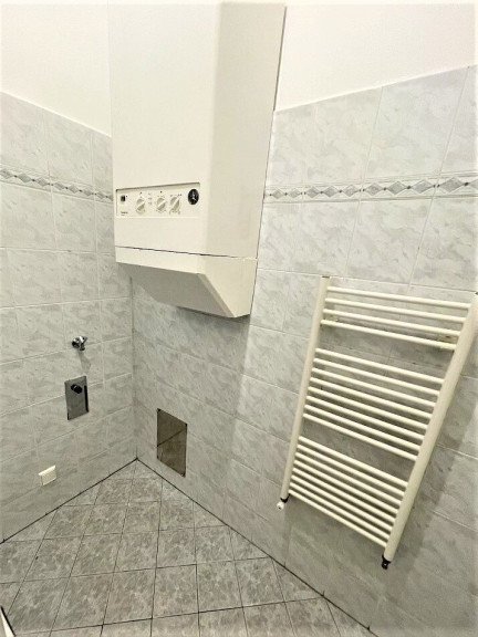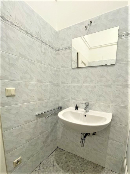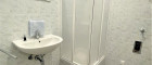 + Badezimmer mit Dusche, Waschtisch und Waschmaschinenanschluss