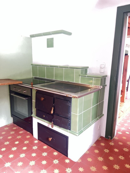 - offener Wohnbereich im EG mit Küche und Essbereich: mit Tischherd