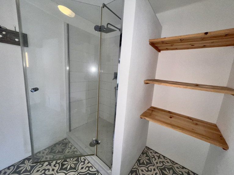 Dielenboden, Fußbodenheizung, Einbauküche, Bad mit Fenster, Badewanne, Dusche