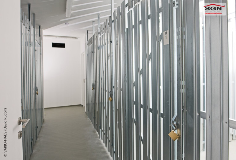 Die Einlagerungsräume befinden sich im Erdgeschoss und jeder Wohnung ist ein Raum zugeordnet. Hier befindet sich auch der Gemeinschaftsraum.