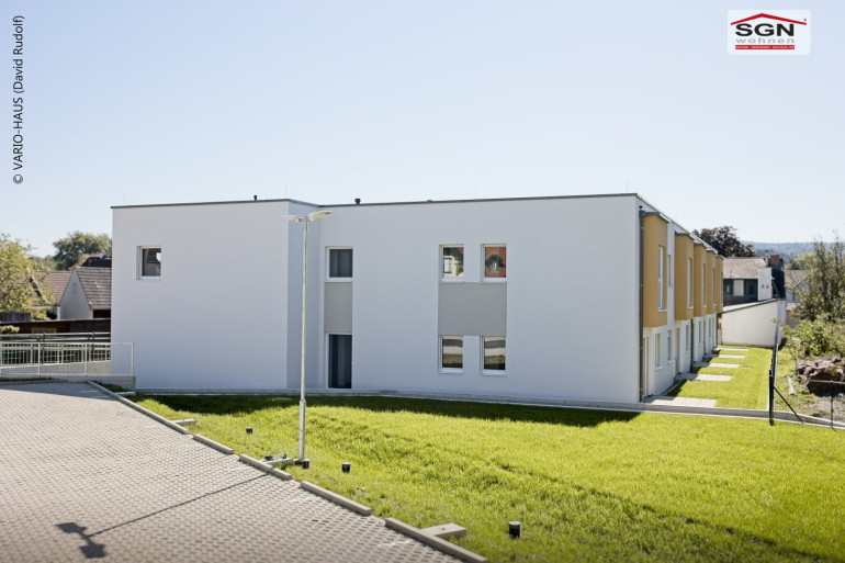 Diese Wohnhausanlage umfasst insgesamt 16 barrierefreie Wohneinheiten im Sinne des „BEGLEITETEN WOHNENS“. Diese verfügen über einen großzügigen Wohn-Küche-Bereich, ein Schlafzimmer und Nebenräume. Die 7 Wohnungen im Erdgeschoss verfügen über eine Terrasse. Der Wohnung Top 2 verfügt zusätzlich noch über einen eingefriedeten Eigengartenanteil. Die 9 Wohnungen im Obergeschoss können bequem mit dem Aufzug erreicht werden, und erhalten einen erkerartigen Vorbau mit französischen Fenstern mit fixem Unterteil.