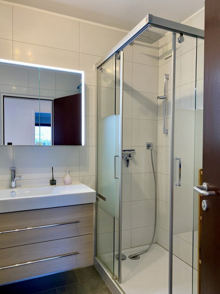Mit zwei hellen Zimmern und extra-Küche (auf den Bildern noch als Kinderzimmer erkenntlich) bietet diese Wohnung ausreichend Raum für individuelles Wohnen. Weiters ein geräumiges Bad mit Wanne und Dusche und ein extra WC. Die neue Einbauküche (siehe Skizze) ist perfekt ausgestattet und lädt zu kulinarischen Abenteuern ein. Genießen Sie entspannte Abende auf der Süd-Terrasse mit 32,6qm, die Ihnen nicht nur genügend Platz für gesellige Stunden im Freien bietet, sondern auch einen atemberaubenden Blick auf die umliegenden Berge, die Stadt und die weite Ferne.