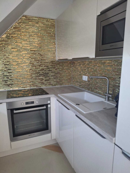 Die Küche ist modern eingerichtet und mit allen Geräten ausgestattet, die Sie für modernes Kochen brauchen. Durch eine Bar wird der Küchen- vom Wohnbereich abgetrennt.