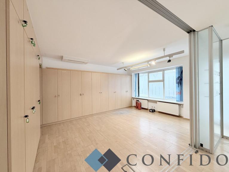 Das Objekt verfügt über einen großzügigen vorderen Bereich mit einer klimatisierten Fläche von etwa 80 m², der durch eine Glaswand bzw. ein weiteres Glasschiebemodul flexibel gestaltet werden kann. Dadurch besteht die Möglichkeit, den Raum bei Bedarf in bis zu drei separate Einheiten zu unterteilen, was eine vielseitige Nutzung ermöglicht.