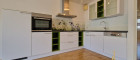 Die moderne Küche ist mit einem Spülbecken, einem Geschirrspüler, einem Kühlschrank, einem Backrohr, einem Elektrokochfeld, sowie einer Umluft ausgestattet.