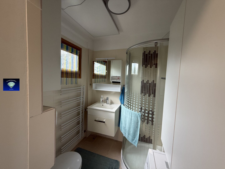 Fliesen, Laminatboden, Gas, Zentralheizung, Wohnküche / offene Küche, Bad mit Fenster, Dusche, Parkplatz