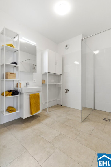 Parkett, Fliesen, Fußbodenheizung, Wohnküche / offene Küche, Personenaufzug, Dusche