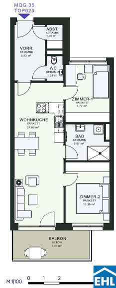 | Heizwärmebedarf: | B 27,31 kWh/m²a |