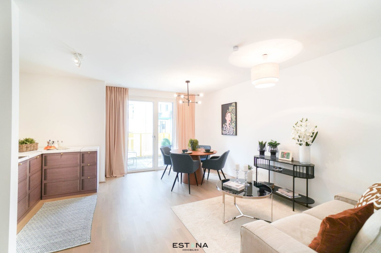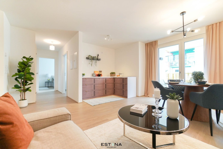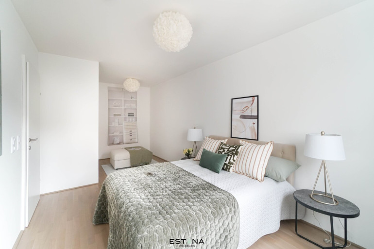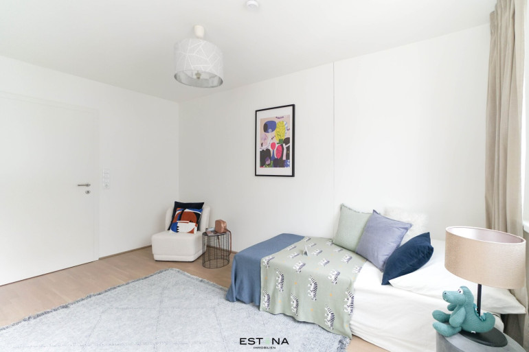Die angeführten Fotos sind Beispielbilder einer bereits fertiggestellten Wohnung oder KI Visualisierung im Projekt.