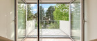 - Maßgefertigte Holz-Alu-Fenster (3-fach Sonnenschutz und Wärmeschutzglas IPASOL-neutral, g-Wert 0,27 bis 0,33)