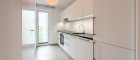 - 1 Küche mit vollausgestatteter Luxus - Einbauküche inkl. aller Geräte und Granit-Arbeitsplatte sowie einem großen Fenster (Franz. Balkon)
