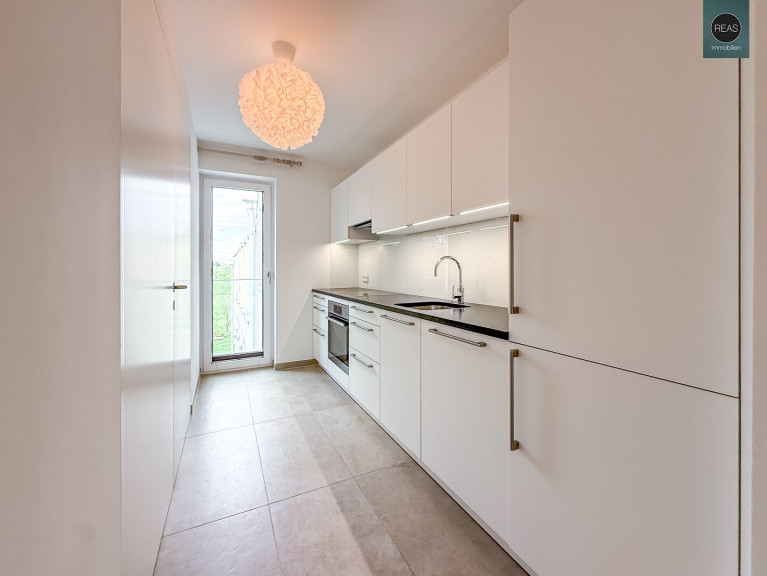 Erdwärme, Fußbodenheizung, Einbauküche, Personenaufzug, Südbalkon, Bad mit Fenster, Badewanne, Dusche