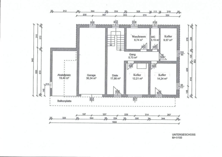Untergeschoss Ziegel- und Massivbeton