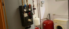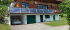 mit Niedrigsten Betriebskosten durch Boden und Wandheizung erzeugt durch die Solarenergie mit Pufferspeicher + Wand- und Fußbodenheizung + Kombiofen mit Automatik für feste Brennstoffe + Pellets-Ofen im Wohnzimmer.