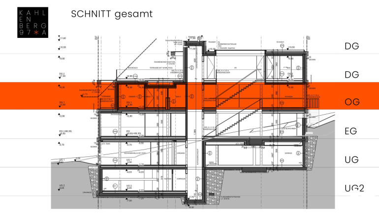 Das Grundstück ist terrassenförmig erschlossen und bietet vom oberen Geschoss aus einen Fernblick über ganz Wien.