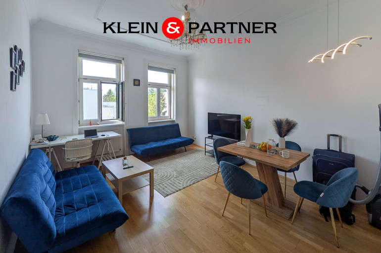 Diese stilvolle, frisch sanierte Altbauwohnung im 2. Liftstock vereint den Charme der Jahrhundertwende mit moderner Design-Ausstattung in absoluter Grünruhelage. Das Objekt wird für eine Kurzzeitmiete von 6 Monaten angeboten und ist dank der optionalen Vollausstattung – von der Sitzgarnitur bis zum kompletten Kücheninventar – sofort bezugsfertig.