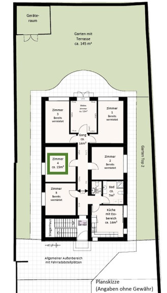 - Zimmer Nr. 4: Fläche: ca. 15m² * ab 30.4.2026 (bzw. bereits ab 15.4.2026 verfügbar)