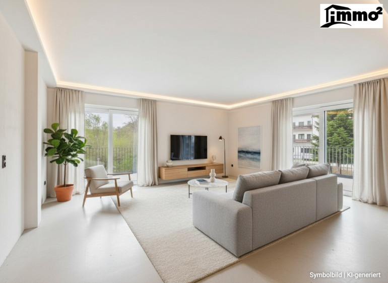 Der offene Wohn- und Essbereich bildet das Herzstück der Wohnung und bietet direkten Zugang zum Balkon – perfekt für entspannte Stunden im Freien.