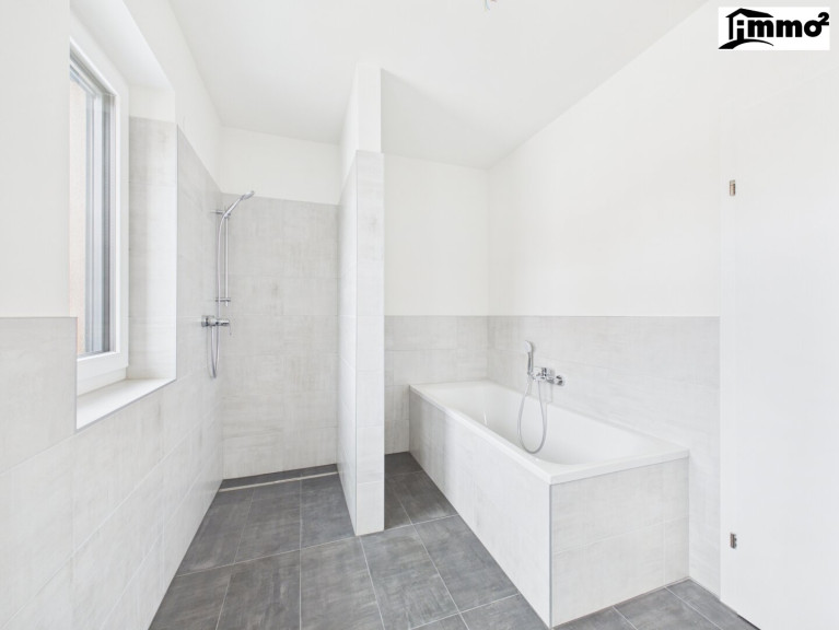Parkett, Fernwärme, Fußbodenheizung, Bad mit Fenster, Badewanne, Dusche, Carport