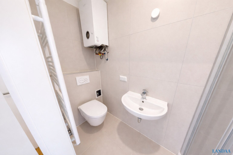 Die Wohnung wurde mit hochwertigem Parkettboden ausgestattet, der den Wohnräumen eine warme und elegante Atmosphäre verleiht. Im Badezimmer sorgen moderne, geschmackvolle Fliesen für ein hochwertiges Erscheinungsbild.