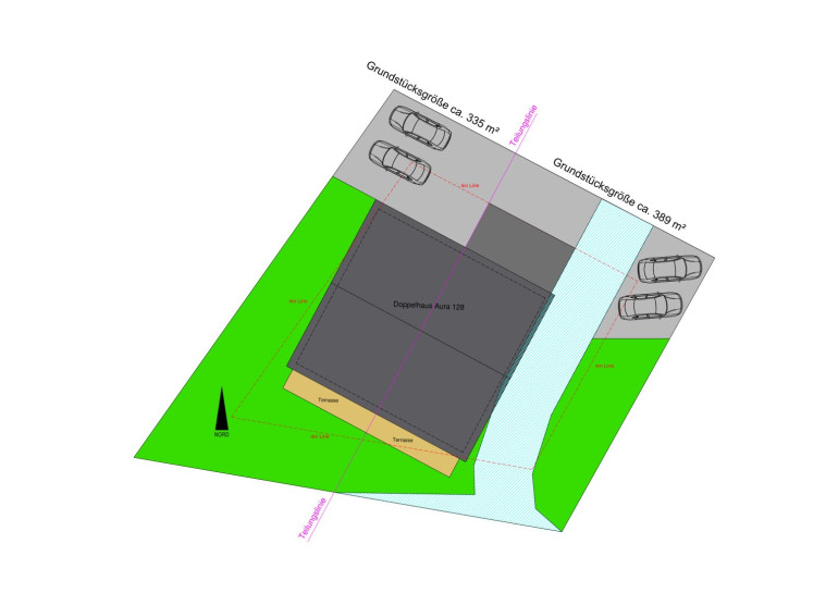 Anbei finden Sie ein Beispiel eines Doppelhauses „Aura128