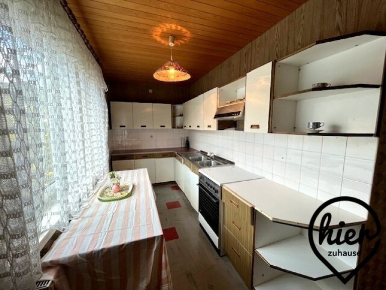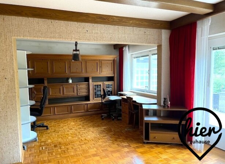 Das teilmöblierte Einfamilienhaus bietet ca. 120 m² Wohnfläche auf zwei Ebenen. Zudem ist es voll unterkellert (ca. 80 m² inkl. Garage), was u.a. viel Platz für Lagerung und Hobbys bedeutet.