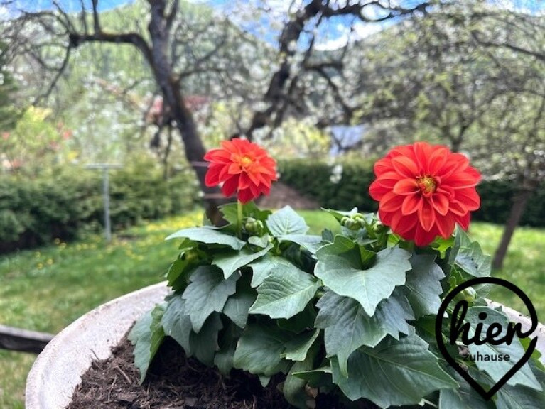 Das Grundstück ist mit einem wunderschönen Holzzaun eingefriedet, der perfekt zum Balkon- und Terrassengeländer und auch zum liebevoll gestalteten Zugangsbereich passt und auch mit den vielen Holzelementen am Haus wunderbar harmoniert. – Selbstverständlich befindet sich im Garten bei der Terrasse eine praktischer Wasseranschluss.