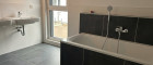 Fliesen, Kunststoffboden, Fußbodenheizung, Einbauküche, Wohnküche / offene Küche, Bad mit Fenster, Badewanne, Dusche, Carport