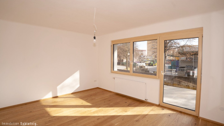 Der überdachte Eingangsbereich führt in das Erdgeschoss mit einem einladenden, großzügigen Garderobenraum. Von hier aus öffnet sich ein heller Gang in den Wohnbereich, der in den weitläufigen, lichtdurchfluteten Wohn-Essbereich mit Zugang zur Terrasse und zum Garten führt. Ein weiteres helles Zimmer sowie ein geräumiges Badezimmer mit Dusche befinden sich ebenfalls auf dieser Ebene. Ein Gäste-WC ergänzt das Raumangebot.