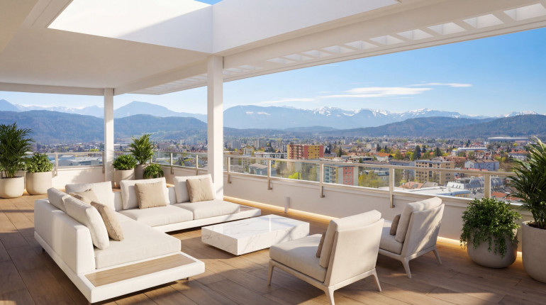 Über den Dächern von Klagenfurt, dort wo die Stadt in die Weite der Landschaft übergeht, eröffnet sich eine Wohnlage, die ihresgleichen sucht. Auf der höchsten Wohnebene Kärntens genießen Sie einen unvergleichlichen 360-Grad-Panoramablick – vom glitzernden Wörthersee bis hin zu den majestätischen Karawanken. Hier verschmelzen urbanes Leben und Natur zu einer einzigartigen Symbiose. Morgens beginnt der Tag mit dem Blick über den See, während abends die Sonne hinter den Bergen versinkt – ein tägliches Schauspiel, das diese Lage zu etwas wahrhaft Außergewöhnlichem macht. Absolute Privatsphäre, keine direkten Nachbarn auf dieser Ebene und eine Perspektive, die nur wenigen vorbehalten ist.