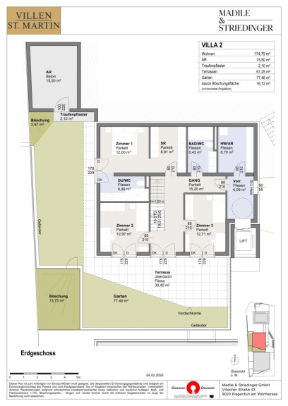 Dieses außergewöhnliche Neubauprojekt befindet sich in einer der exklusivsten Wohnlagen Klagenfurts – im begehrten Stadtteil St. Martin am Kreuzbergl. Die Umgebung zählt zu den gehobensten Wohngegenden der Stadt und vereint absolute Ruhe, Natur und Privatsphäre mit einer hervorragenden Infrastruktur. Die Villen liegen am sonnigen Südhang und bieten dadurch nicht nur optimale Lichtverhältnisse, sondern auch ein einzigartiges Wohngefühl mit Blick ins Grüne. Das Naherholungsgebiet Kreuzbergl befindet sich in unmittelbarer Nähe und lädt zu Spaziergängen, Sport und Entspannung ein. Gleichzeitig sind das Stadtzentrum sowie der Wörthersee in wenigen Minuten erreichbar – eine Kombination, die höchste Lebensqualität garantiert.