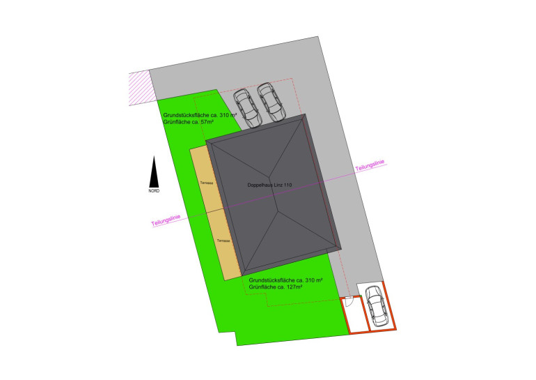 Anbei finden Sie ein Beispiel eines Doppelhauses „Linz110“.