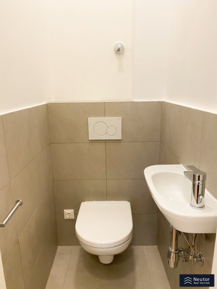 Der einladende Vorraum bietet ausreichend Platz für eine Garderobe und erschließt ein separates WC sowie einen praktischen Abstellraum mit Waschmaschinenanschluss. Das Badezimmer überzeugt durch eine gelungene Kombination aus Funktionalität und Komfort: ausgestattet mit einer Badewanne, großzügiger Walk-in-Dusche und zusätzlichem WC entsteht hier ein stilvoller Rückzugsort. Zwei vom Vorraum aus begehbare Zimmer bieten flexible Nutzungsmöglichkeiten und lassen sich individuell gestalten.