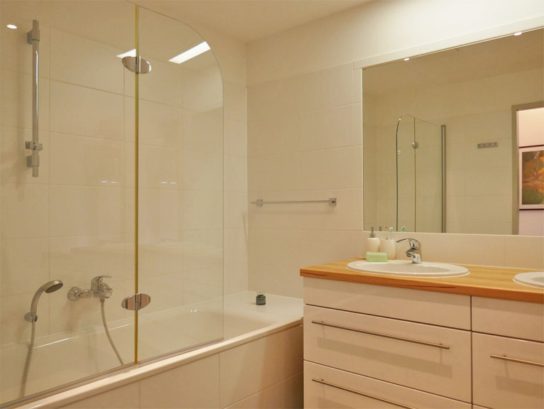 Fliesen, Parkett, Gas, Zentralheizung, Einbauküche, Nordbalkon, Südbalkon, Badewanne, Dusche, Kabel/Satelliten-TV, Garage