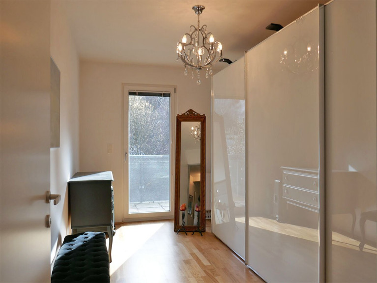 Als oberste Wohnebene steht den zukünftigen Bewohnern das Dachgeschoß zur Verfügung, das sich in ein fast 19 m² großes, lichtdurchflutetes Studio und in ein Badezimmer unterteilt. Außerdem bietet es zwei Dachterrassen, eine nord-, eine südseitig, die beide einen wunderbaren Ausblick auf die ruhige, grüne Umgebung gewähren.