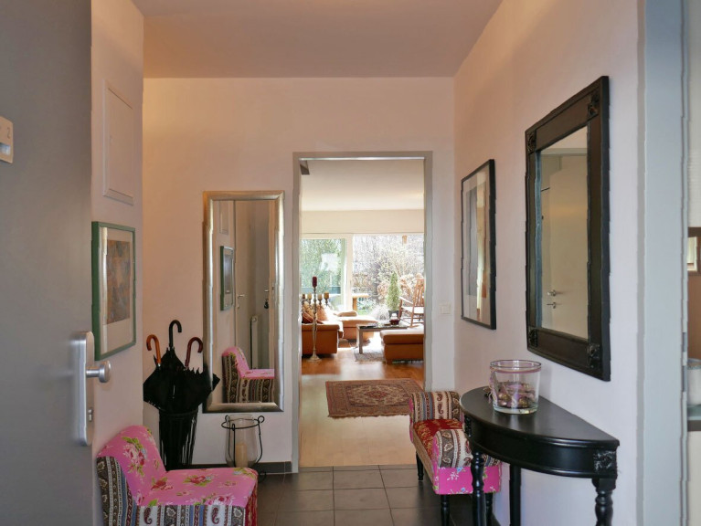 Im Obergeschoß bietet das Reihenhaus einen zentralen Gang mit einer Nische mit Waschmaschinenanschluss, innen liegen ein Badezimmer und ein separates WC. Richtung Norden ausgerichtet ist ein großzügiges Zimmer von 20 m², an der Südseite befinden sich zwei weitere Zimmer, jeweils mit einem Ausgang auf die fast 9 m² große Terrasse.