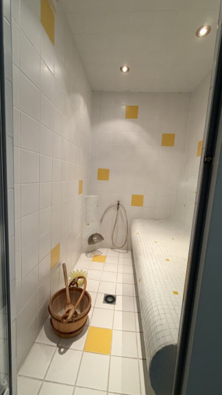 Parkett, Fliesen, Steinboden, Gas, Etagenheizung, Einbauküche, Wohnküche / offene Küche, Ostbalkon, Bad mit Fenster, Badewanne, Dusche, Alarmanlage, Sauna