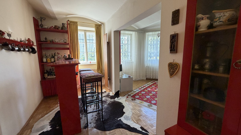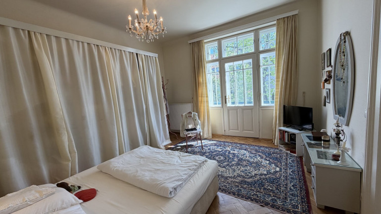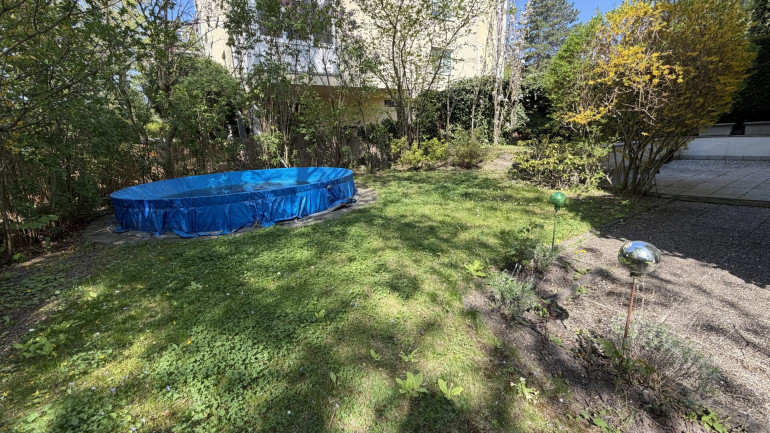 Der Außenbereich unterstreicht den repräsentativen Charakter der Liegenschaft: Vorgärten und ein historischer Zaun schaffen eine stilvolle Distanz zur Straße, während auf der Rückseite ein begrünter Garten mit gewachsenem Baumbestand, Freiflächen und einem dezent integrierten Pool zusätzlichen Freiraum bietet.