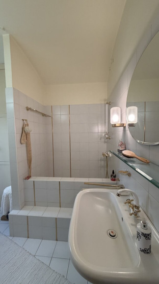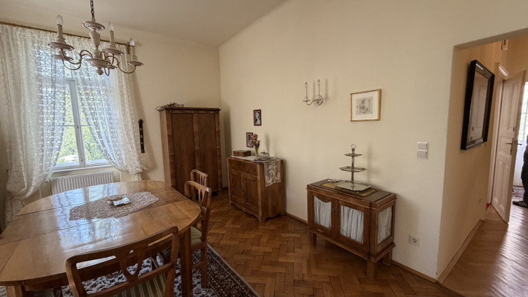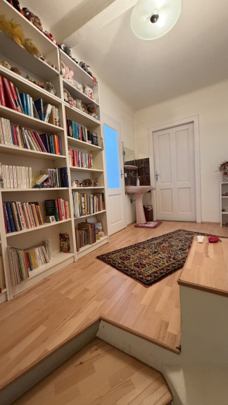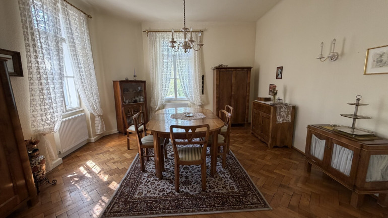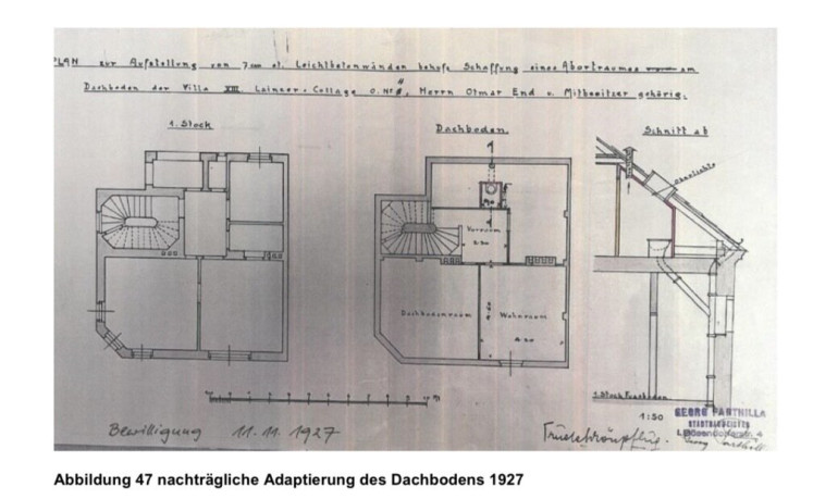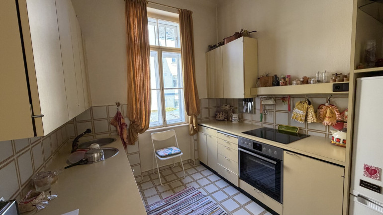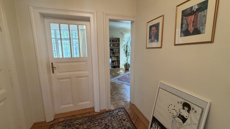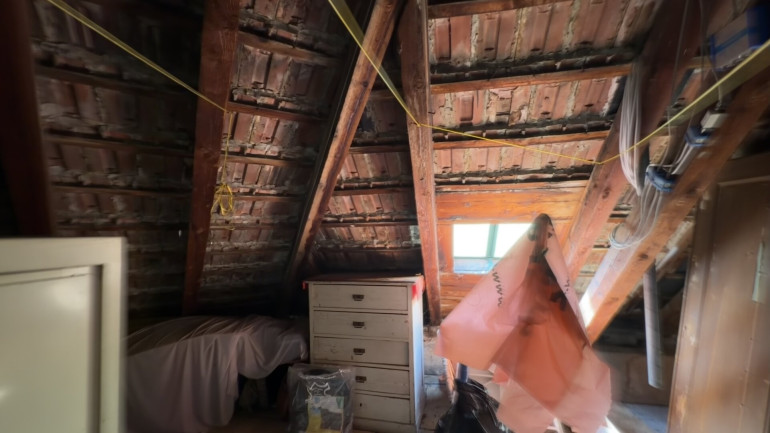Hochparterre und Dachgeschoss wurden zuletzt als großzügige Einheit genutzt und umfassen mehrere Zimmer sowie Küche, Badezimmer und WC. Darüber erschließt sich ein weiterer Dachbereich mit Mansardenzimmer, sanitären Anschlüssen und Zugang zum Rohdachboden.
