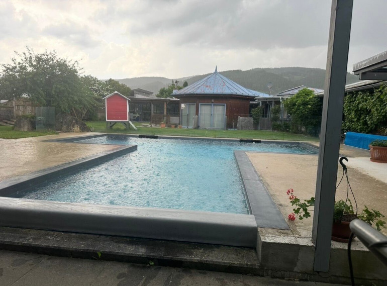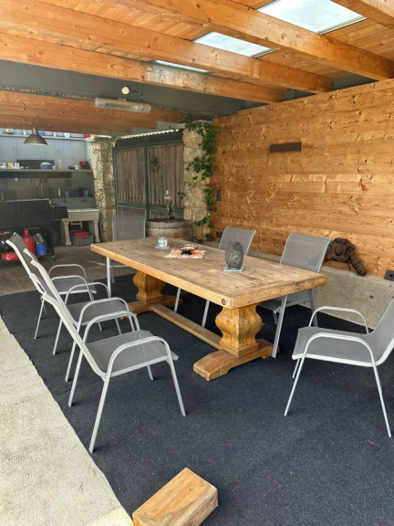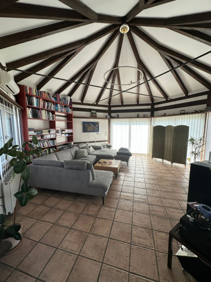 Dieses exklusive Haus mit Büro und Werkstatt besticht durch seine top Ausstattung und eine außergewöhnliche Raumaufteilung. Herzstück ist der pavillonartige Wohnbereich, ergänzt durch einen großzügigen Wintergarten mit direktem Zugang zum Pool. Vier Schlafzimmer, ein weitläufiger Garten, ein Carport und ein Lager bieten viel Platz und Komfort.