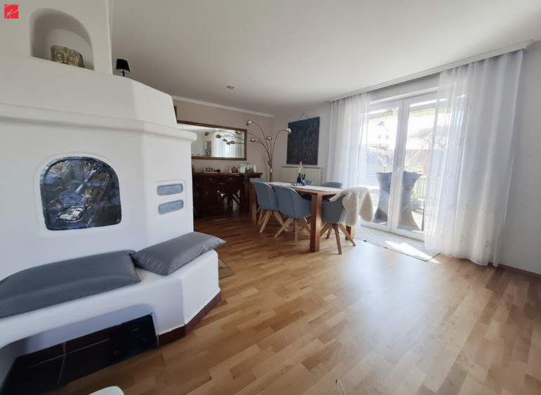 - Großzügiger Wohnbereich mit Kachelofen und Zugang zur Sonnenterrasse